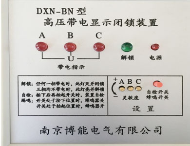 本公司研制的DXN-BN-126KV-3P,DXN-BN-252KV-3P系列高压带电显示闭锁装置是一种新型防止电气误操作装置,系感应式(非接触式)高压带电检测装置。该装置适用于交流50Hz、额定电压40.5~550kV的户外(也适用于户内)电气网络或设备上,用于反映带电状况,防止电气误操作。该装置安装在GIS汇控柜、线路接地刀闸、母线接地刀闸及母线压变接地刀闸上,能起到防止带电误合接地刀闸的作用。该装置能与电磁锁,机械程序锁、微机闭锁等防误装置配合实施强制闭锁,是户外(户内)电气网络或设备上防止电气误操