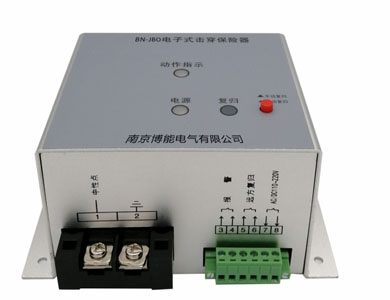 BN-JBO 电子式击穿保险装置 产品介绍 BN-JBO型电子式击穿保险装置为了防止在不接地低压配电系统和电压互感器中性点由于电压升高而造成绝缘击穿的问题,往往采用击穿保险器作为其主要保护装置。一旦被保护设备和大地 之间产生的过电压达到保险器的放电电压,击穿保险器即行放电,电流经接地装 置流入大地,从而可将过电压限制在一定数值之内,设备的绝缘得到有效保护。电子式击穿保险装置的电气特性与普通的击穿保险器完全相同,但其功能远远超过通击穿保险器,是普通击穿保险器理想的替代产品。本公司经过多年对击穿保险器特性